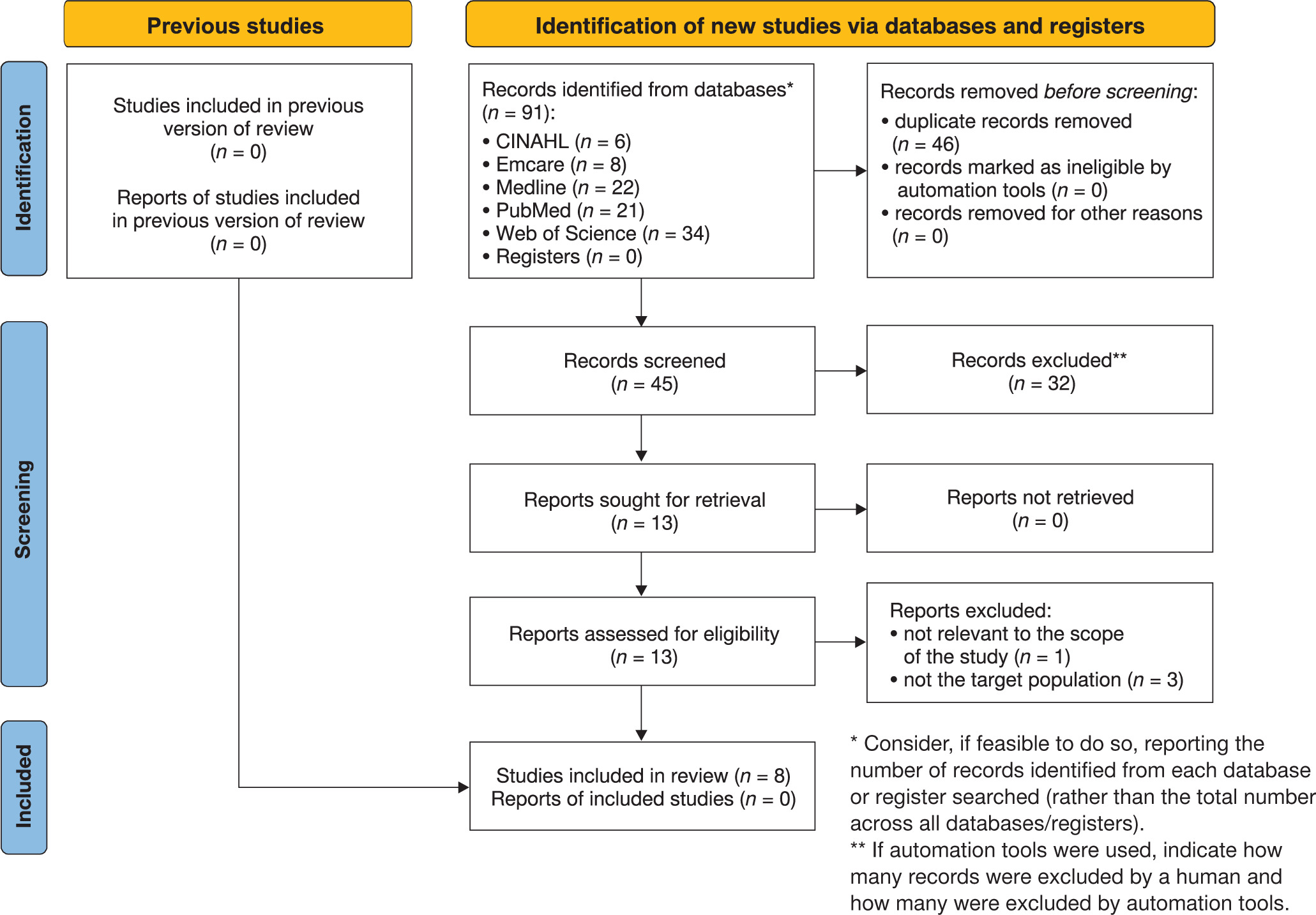 A total of 91 studies were identified through a thorough exploration of the selected databases (Figure 1) after redundant entries were eliminated. Following the application of the predetermined inclusion criteria, nine studies met the requirements for inclusion in the comprehensive analysis. All studies under consideration were observational in nature, with a conspicuous absence of review or interventional studies.