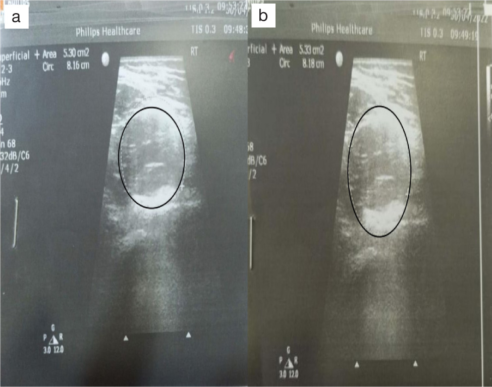 Outcomes measures were assessed twice, i.e. on day 0 (pre-treatment) and on day 10 (post-treatment). Diagnostic ultrasonography was conducted by a qualified radiologist, while a qualified physiotherapist assessed the other outcomes. Both of these assessors were blinded to the participants’ group allocations. The blinding was maintained in two ways: First, the diagnostic USG was performed by a radiologist who was unaware of the participants’ group assignments. Second, the clinical assessments, including the Thomas test and other evaluations, were conducted by a qualified physiotherapist who was also blinded to the intervention given to the participants. To further ensure blinding, participants’ identities were coded, preventing any sharing of personal information that could reveal group allocation.