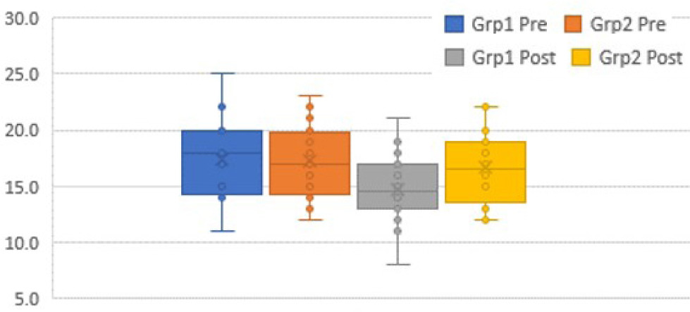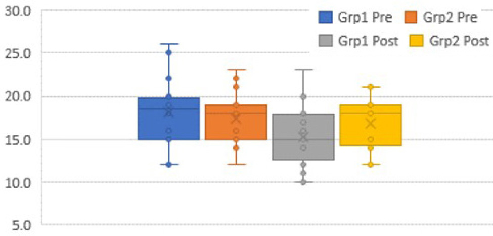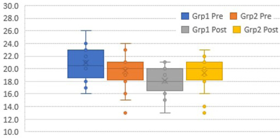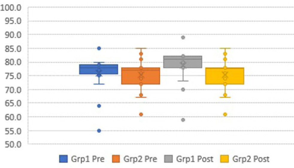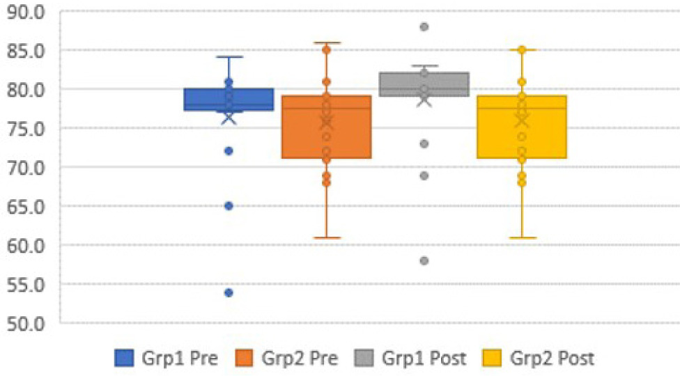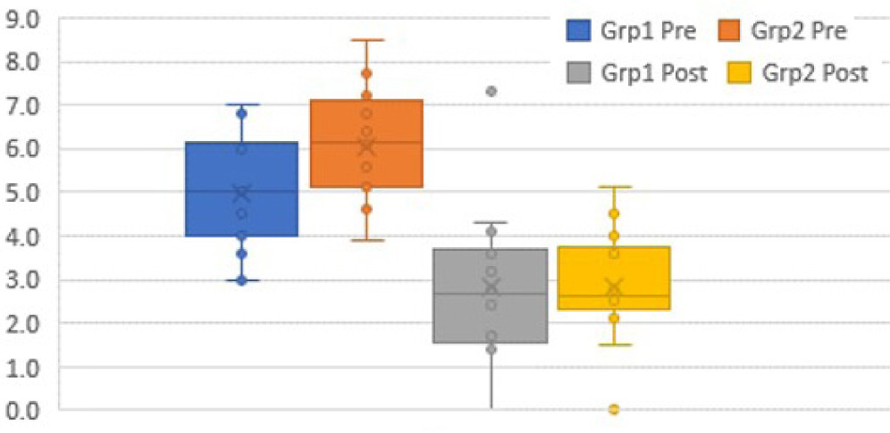 The box plots (Figures 6–12) provide a pictorial depiction of all outcomes between the groups.