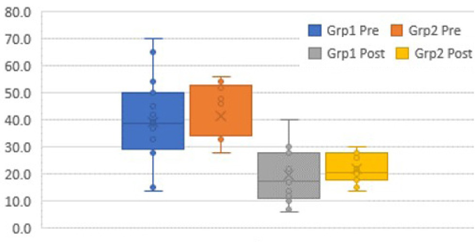 Data collected was tabulated and analysed for statistics using Statistical Package for the Social Sciences (SPSS) version 23.0. For handling missing data, statistical methods such as multiple imputation were used to account for incomplete responses, minimising bias and preserving the study’s integrity by including all participants in the analysis, regardless of whether they completed all aspects of the study. For categorical data, a frequency analysis was performed, while for continues variables, the mean and standard deviation or median and interquartile range (IQR) were analysed. Data was analysed for normality using the Kolmogorov–Smirnov test, which showed the data was not normally distributed. Hence, the within-group analysis was performed using the Wilcoxon matched-pairs test, and the between-groups analysis was performed using the Mann–Whitney U test. The probability value for statistical significance was set at p < 0.05.